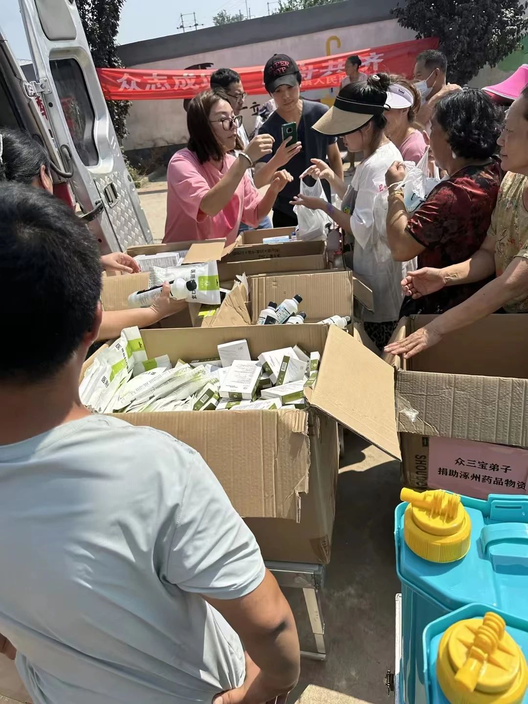 大灾后必有大疫,身体健康问题不可小觑,危急时刻,北京真容公益和北京百姓阳光大药房第一时间响应紧急救援,对受灾严重的河北涿州宁村和茂田两个村庄捐出防疫物资和药品。